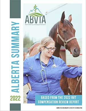 The 2022 RVT Compensation Review was based on data provided through a survey sent to all members of the 3 provinces, 3,868 in total (Alberta, 2,783; Saskatchewan, 640; and Manitoba, 445). Additionally, data from Statistics Canada, the Conference Board of Canada, the 2022 RVT Compensation and Career Survey; the 2021 Alberta Veterinary Professional Workforce Project, the 2021 ABVTA Wage & Benefits Survey, the 2021 SAVT Wage & Career Survey, and the 2020 MVTA Wage